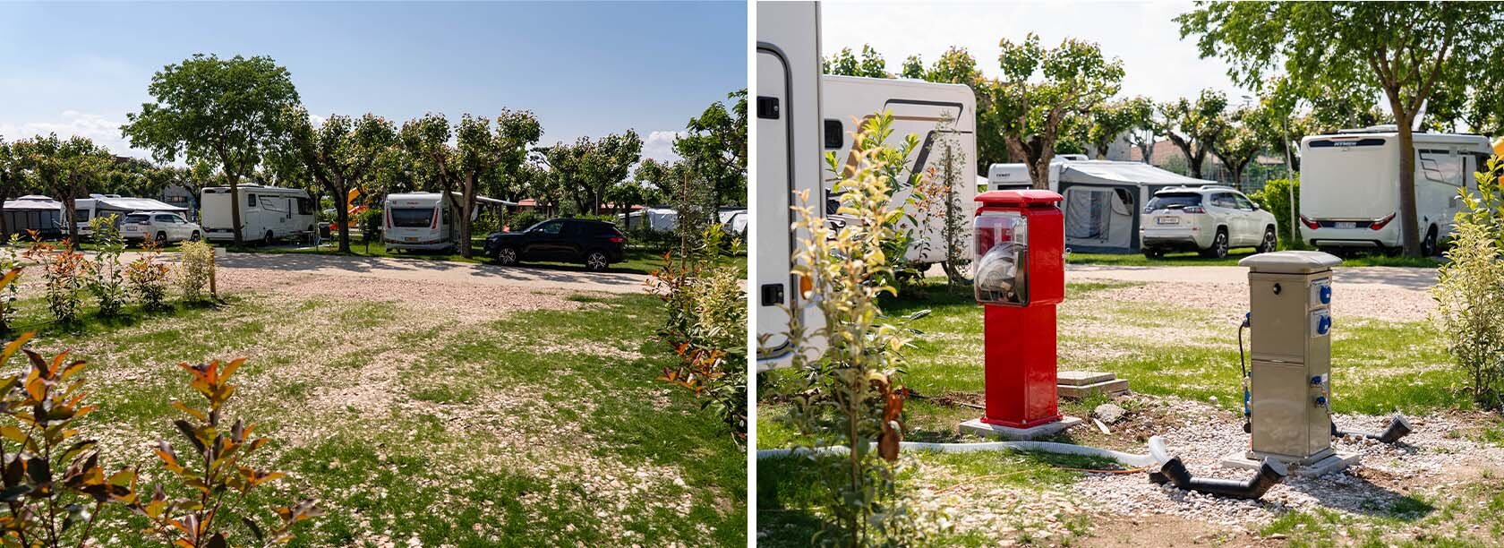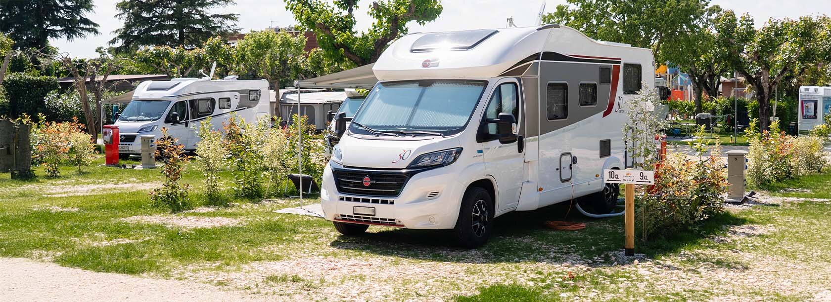 Pensate per offrire il massimo dello spazio e del comfort ai camper più grandi, queste piazzole vantano oltre 90 mq di superficie, ideali per chi cerca ampio respiro durante la propria vacanza. Situate in una posizione strategica, molto vicine ai bagni e al cuore del campeggio, sono dotate di 16 ampere di elettricità, carico e scarico dell’acqua e connessione Wi-Fi. Perfette per chi desidera comodità e praticità senza rinunciare alla libertà del campeggio